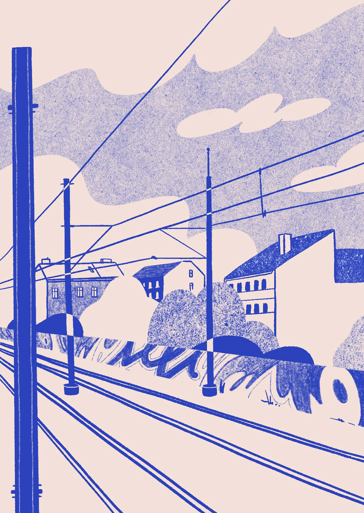 Personal project, exploring a monochrome colourpalette and a composition with straight and wavy lines. Never not inspired by the urban scenery by the Berliner S-Bahn.
