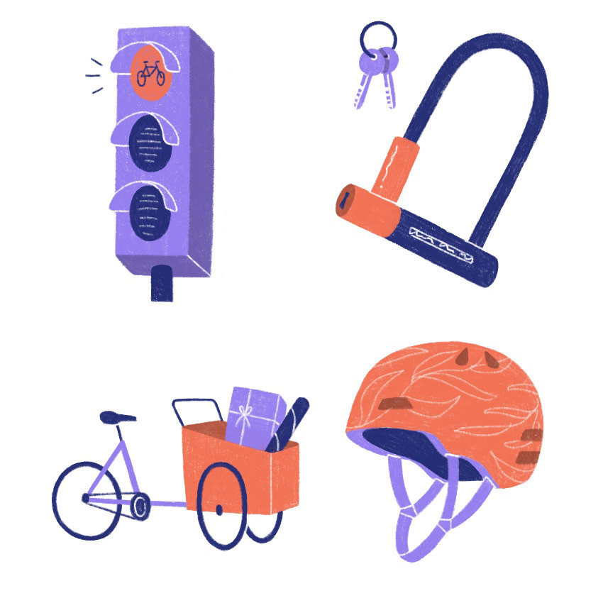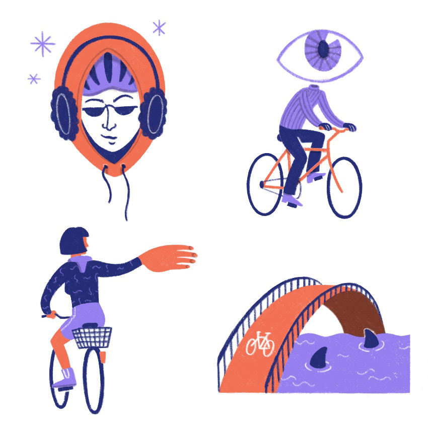 Two sets of spot illustrations on the topic of cycling in Copenhagen.